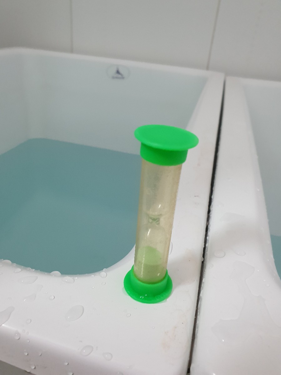 – 5- 10분동안 몸을 말린 뒤 옷을 입는다.