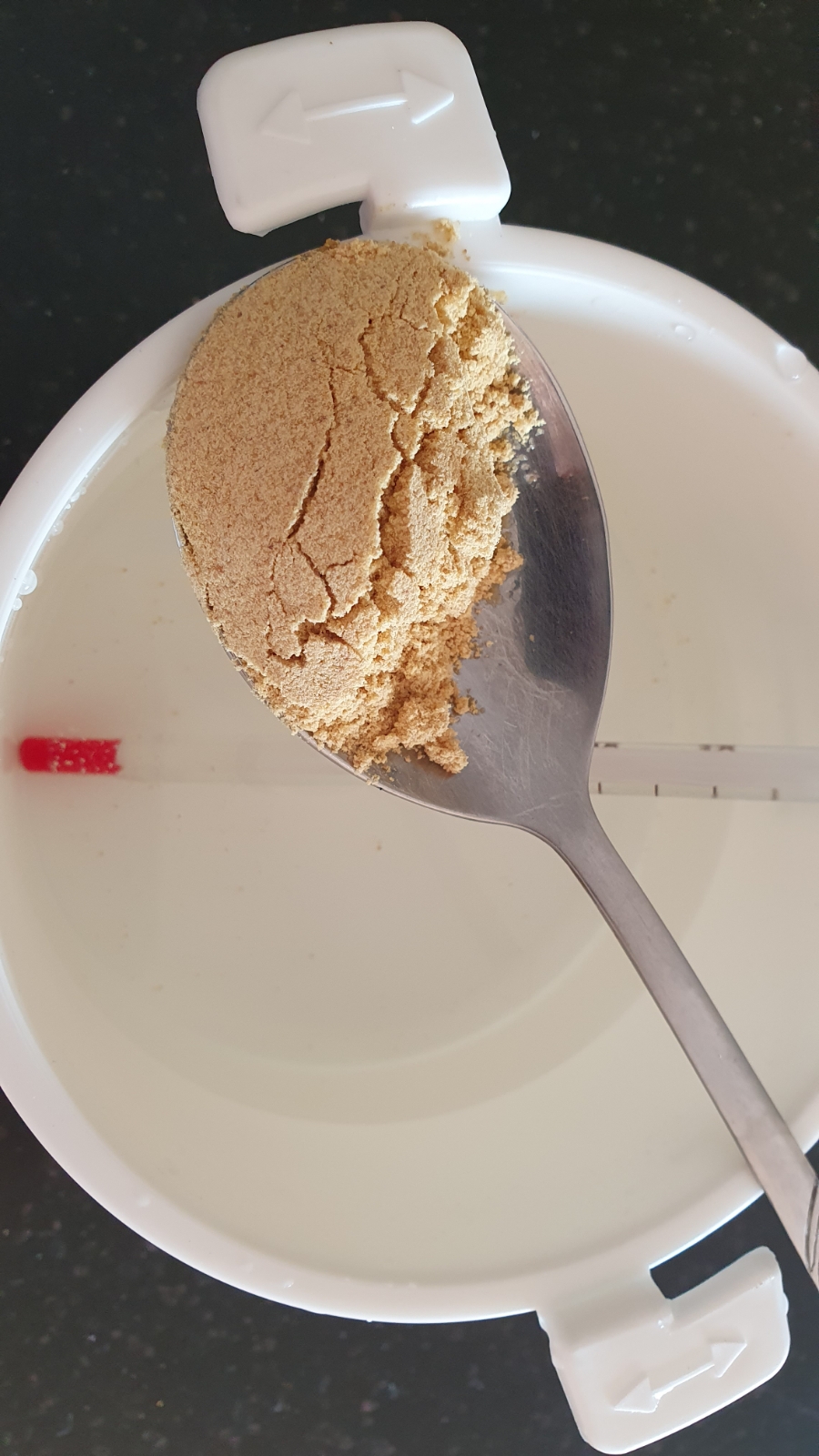 2. 겨자가루는 밥숟가락으로 반쯤, 차숟가락으로는 한스푼 수북히 넣어 저어준다.